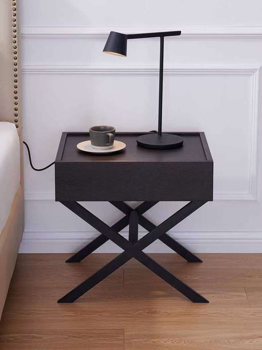 欧简约烟熏黑橡木储物柜边几
