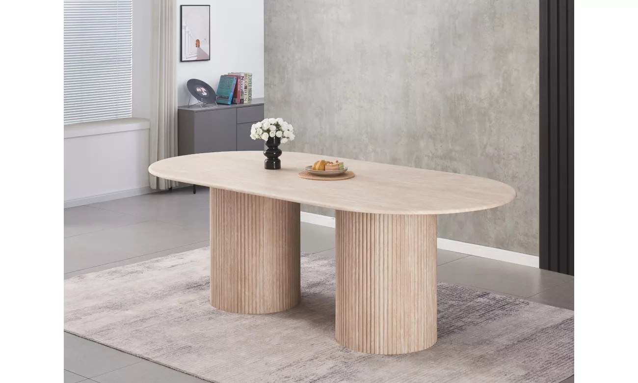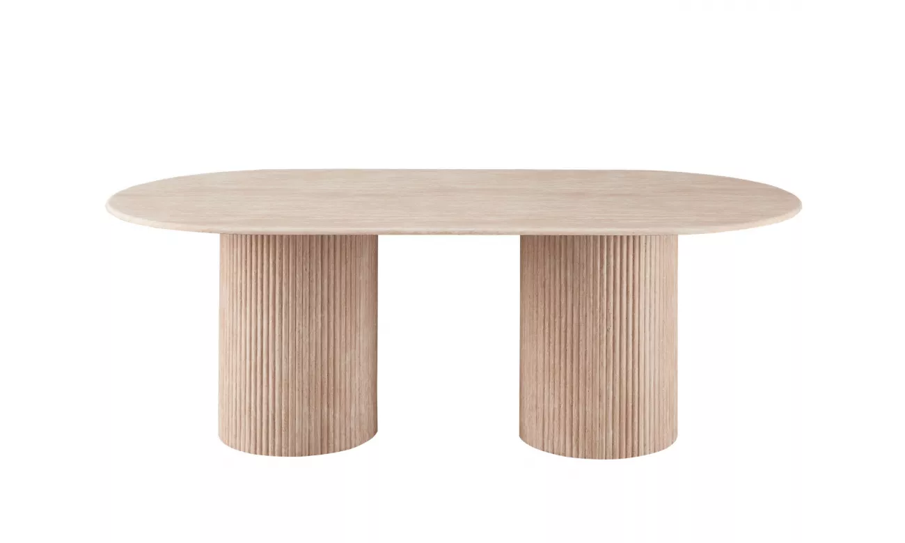 作为我们受欢迎的庞贝系列的精致进化,这张椭圆形餐桌轻松融合了雕塑般的造型与质感的优雅。