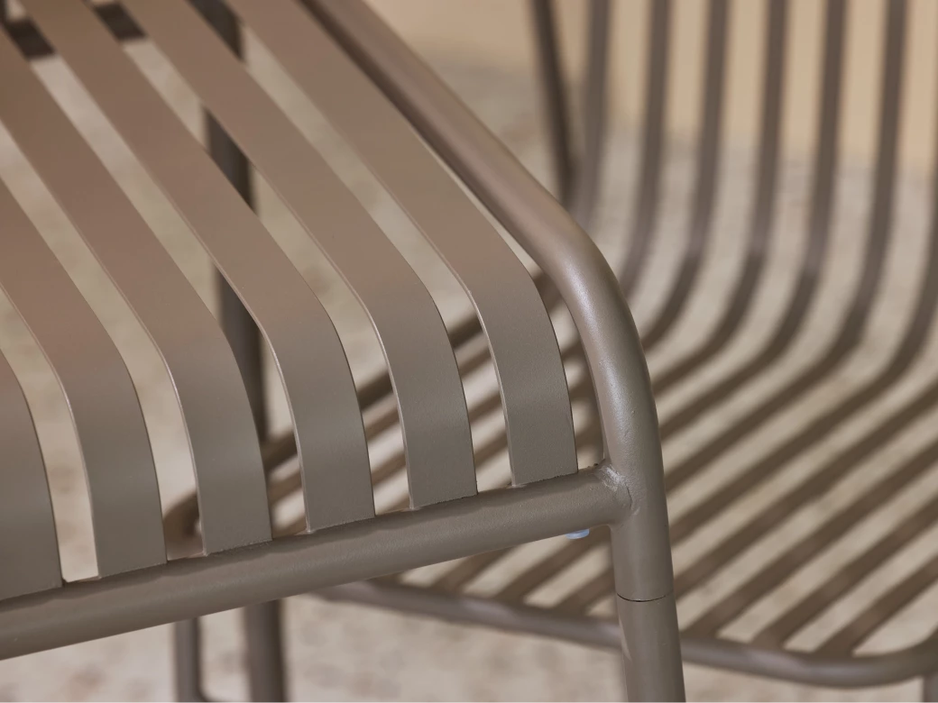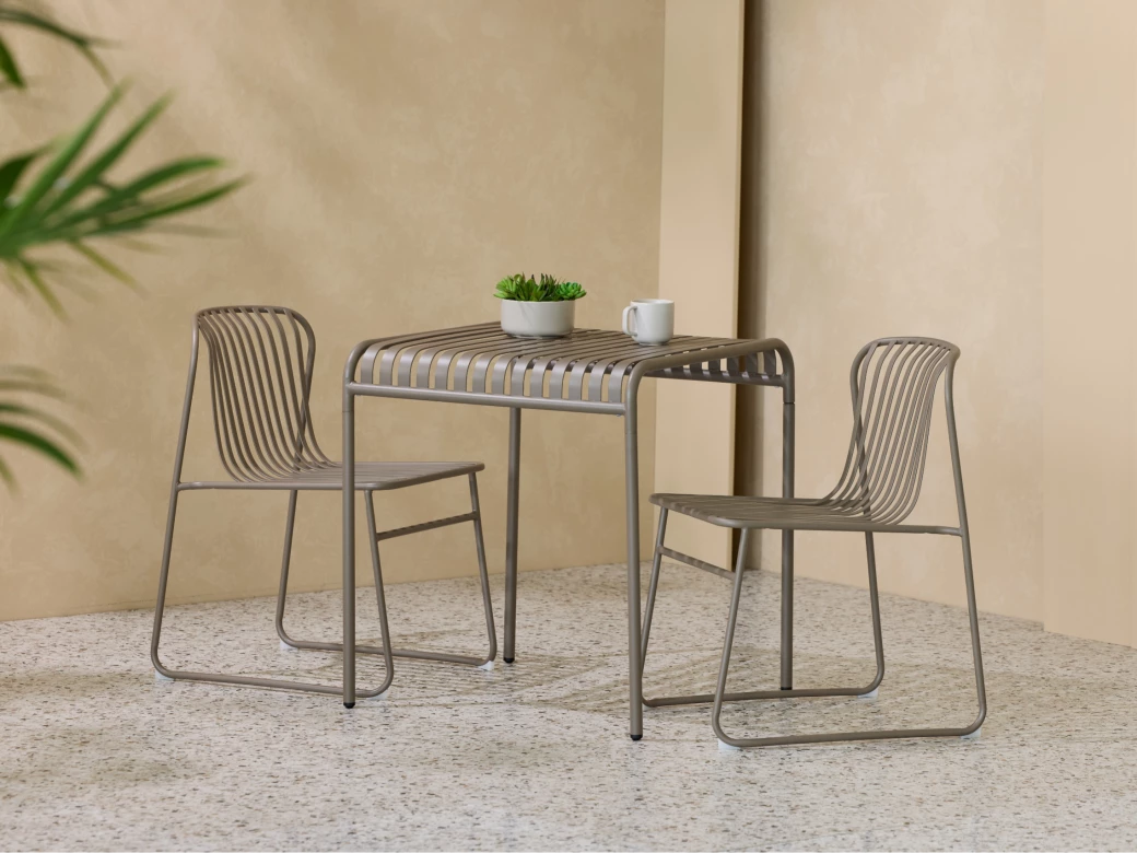用我们精心制作的餐桌提升您的户外用餐体验。其光滑的弧形钢架为任何空间增添了一丝精致,使其成为您的露台或甲板的完美补充。