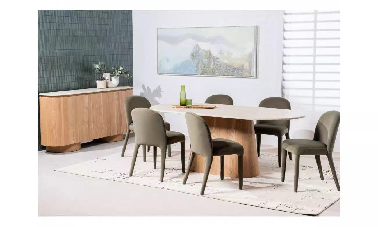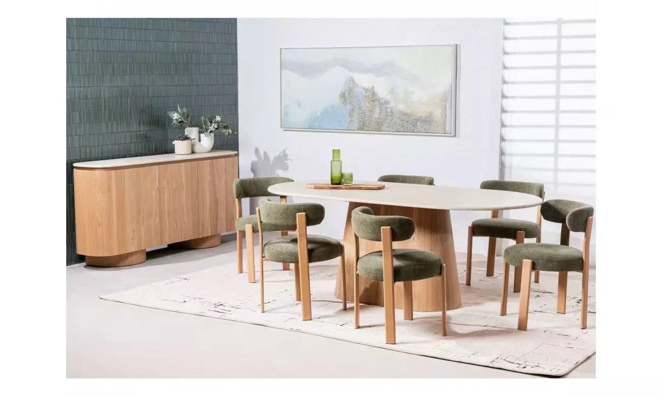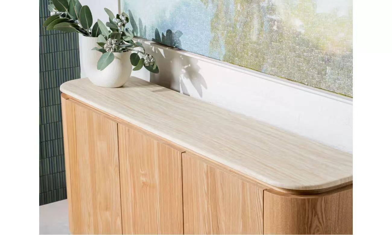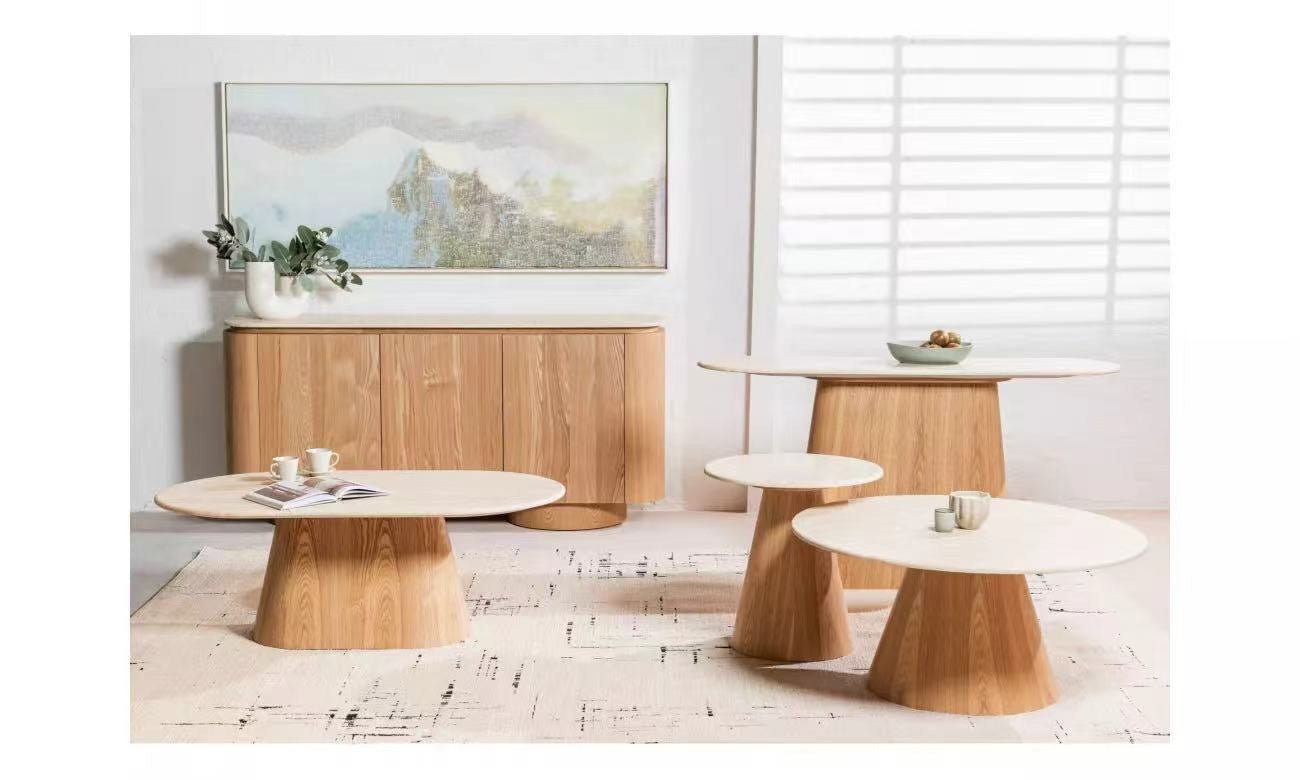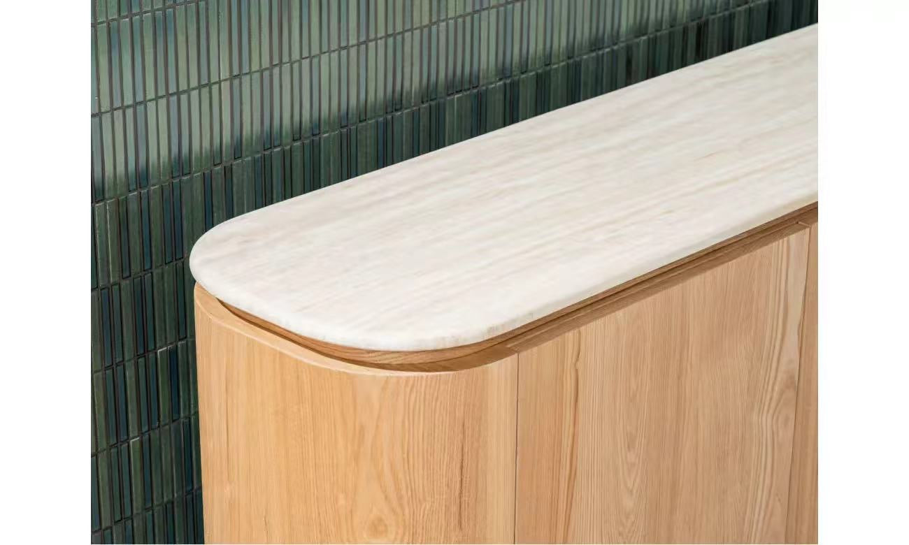 Waverley系列将有机纹理与现代设计融合在一起,创造出一个既永恒又现代的系列。每件作品都覆盖着哑光白色石灰华人造大理石,提供精致的石头外观和日常耐用性。机身和框架由白灰单板MDF制成,具有自然的表面处理,增加了温暖和优雅。凭借其柔和的曲线和多功能的造型,Waverley系列为生活和餐饮内饰带来了和谐和低调的奢华。