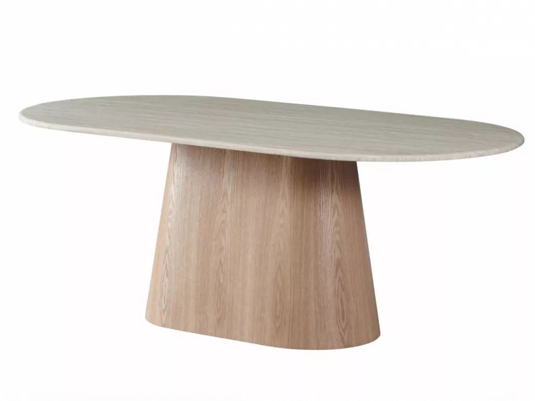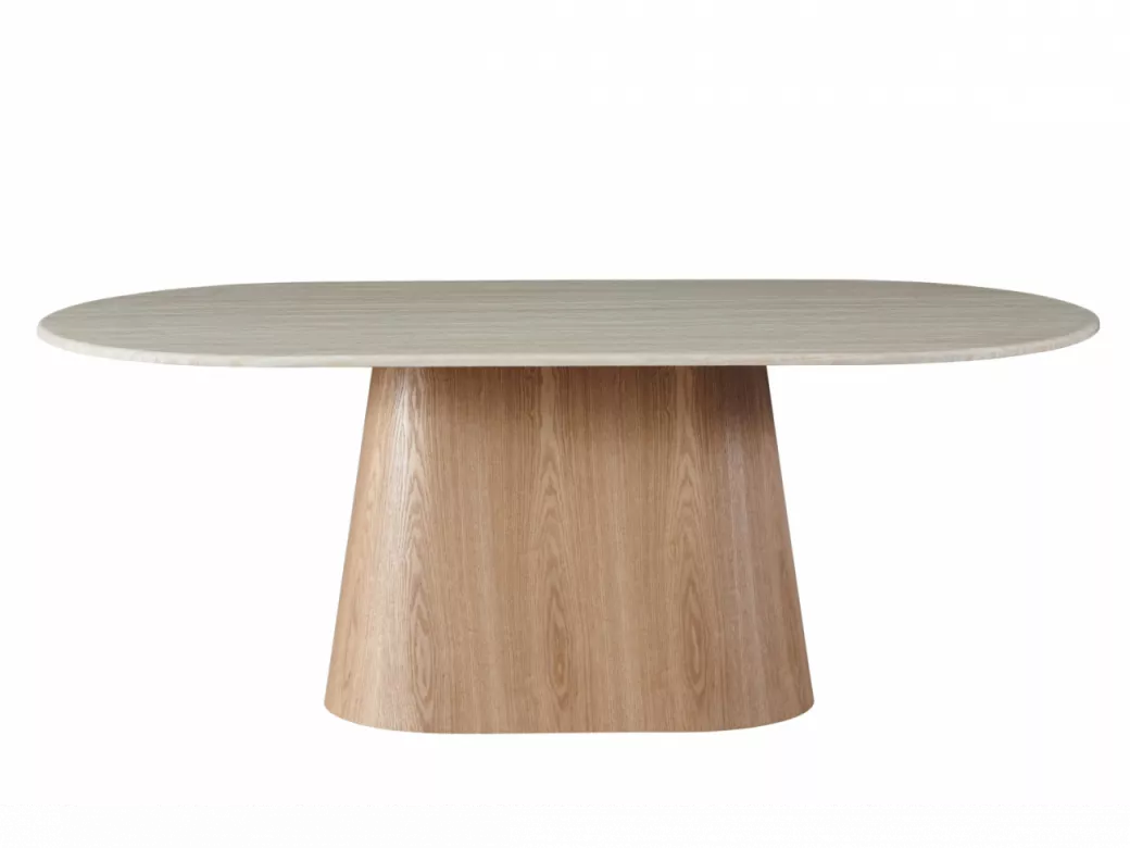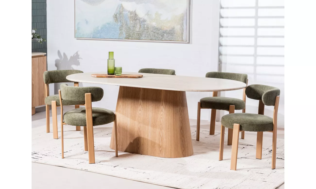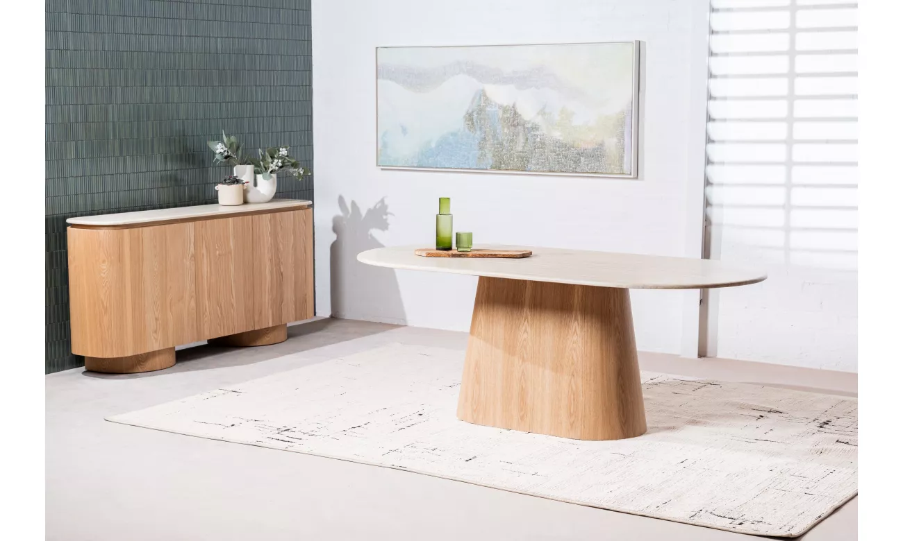 Waverley餐桌以其精致的材质和雕塑般的造型,完美捕捉了自然优雅的精髓。它采用哑光白色石灰华人造大理石桌面,底座采用白蜡木贴面MDF制成,呈现自然色,完美平衡了永恒的精致与日常耐用性。作为真正的核心装饰,它为现代餐厅室内带来了温暖和低调的奢华。